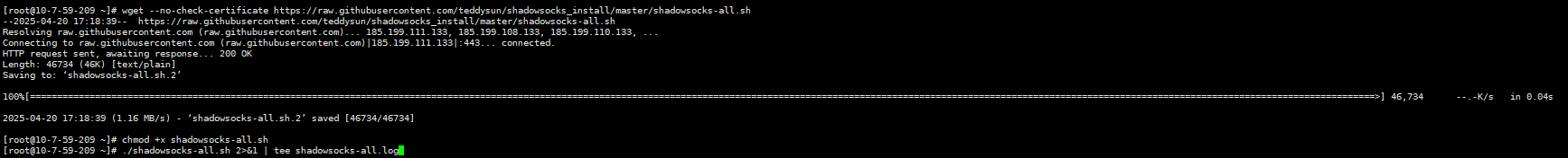 wget --no-check-certificate https://raw.githubusercontent.com/teddysun/shadowsocks_install/master/shadowsocks-all.sh。执行命令
